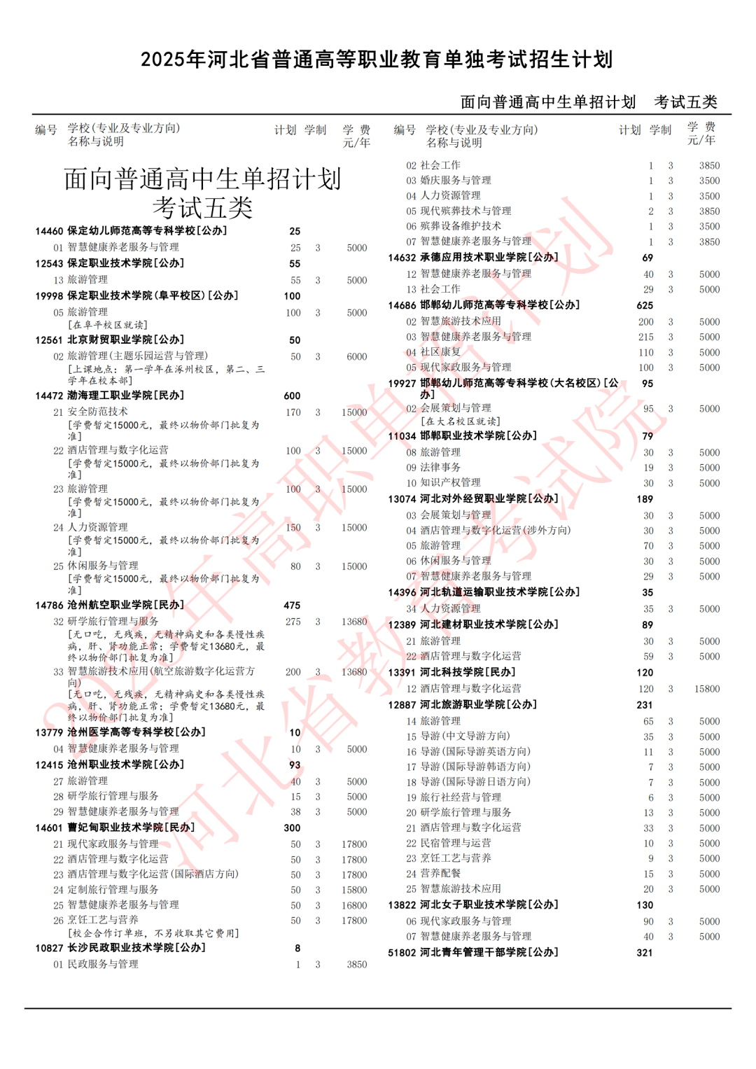 2025年河北单招考试五类招生计划2025年河北省单招考试五类投档分数线