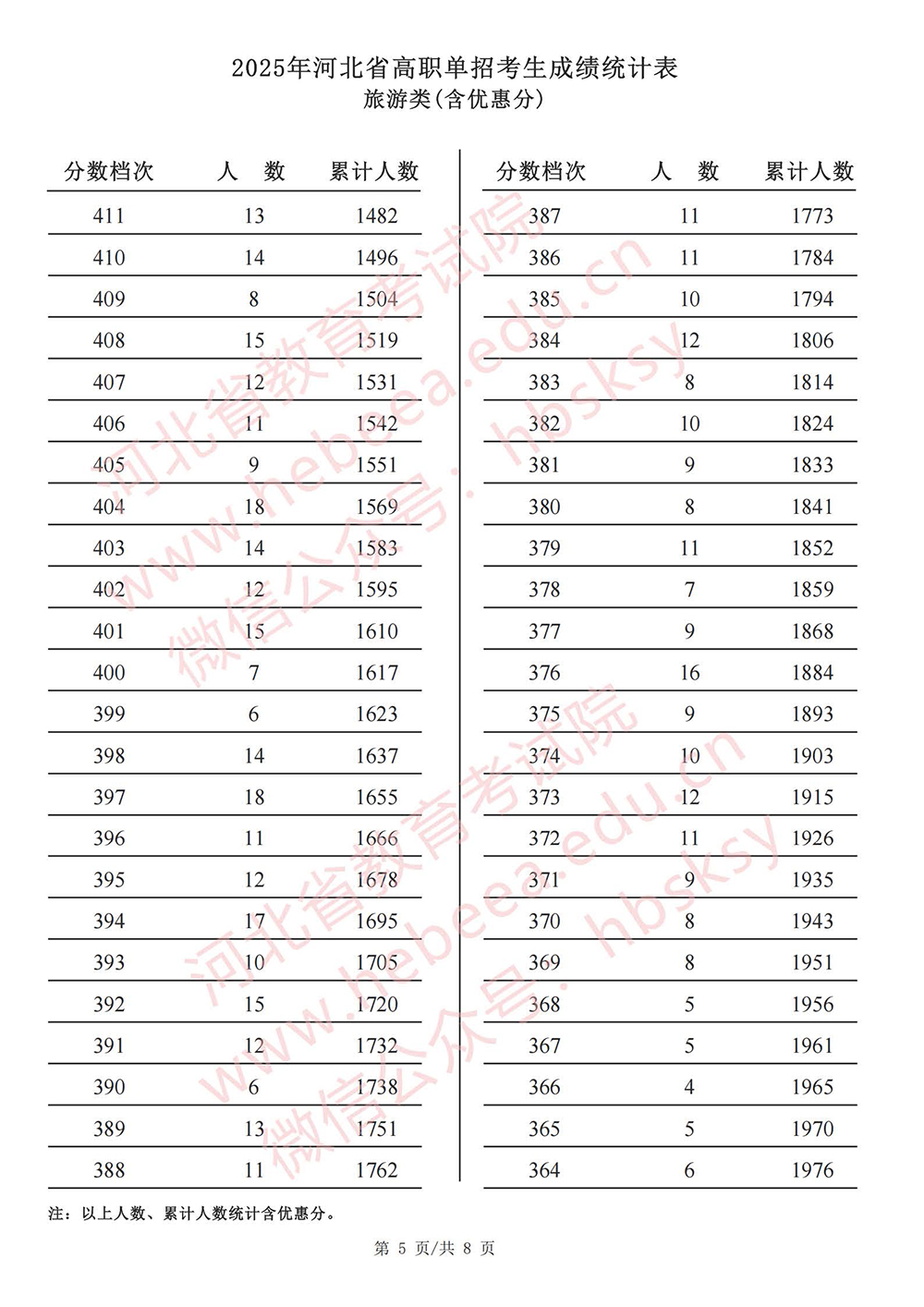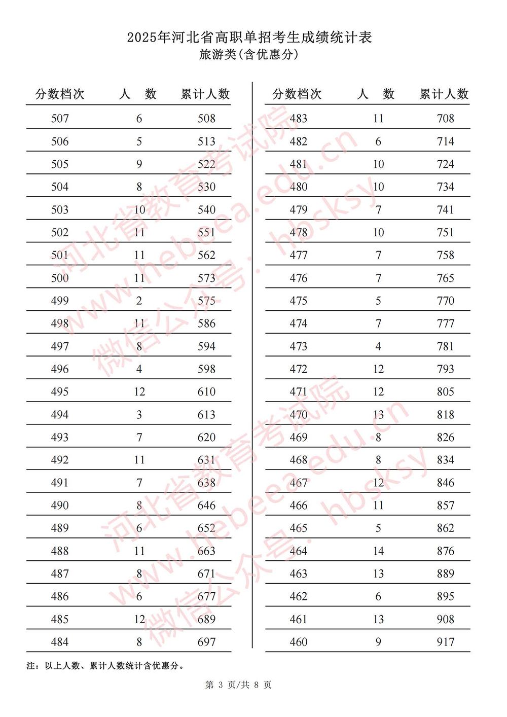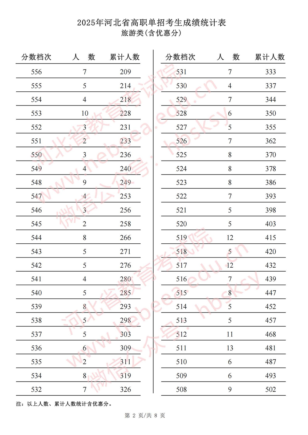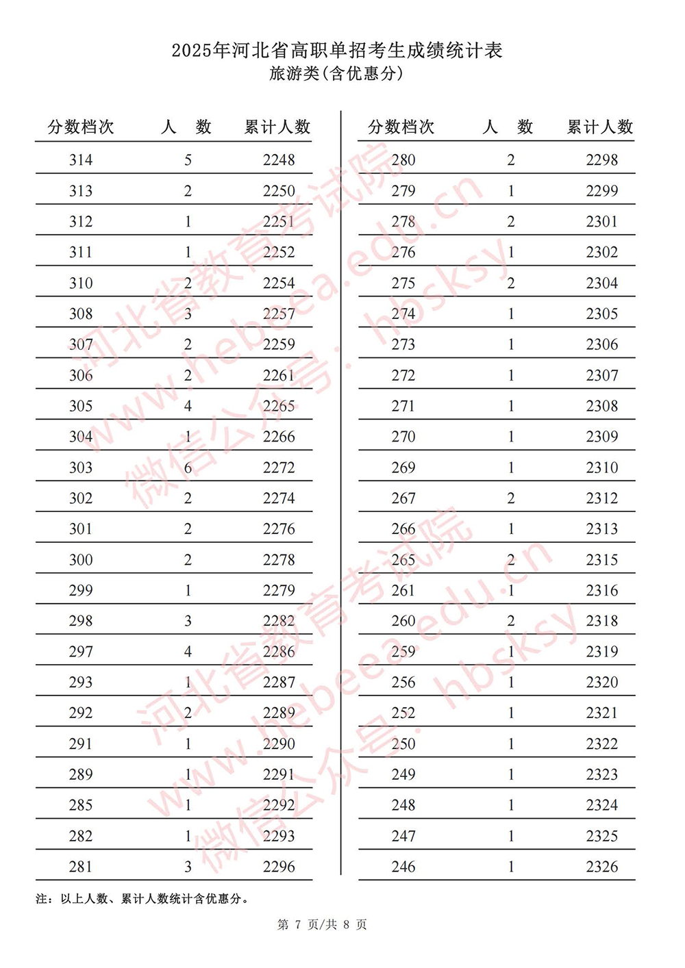 2025年河北省高职单招【旅游类】成绩统计表