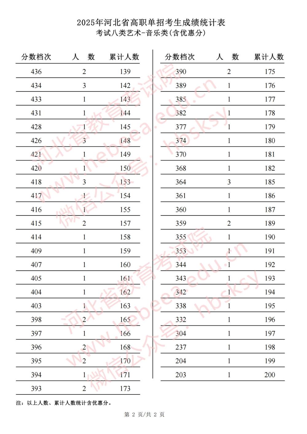 2025年河北省高职单招考试八类艺术-音乐类成绩统计表