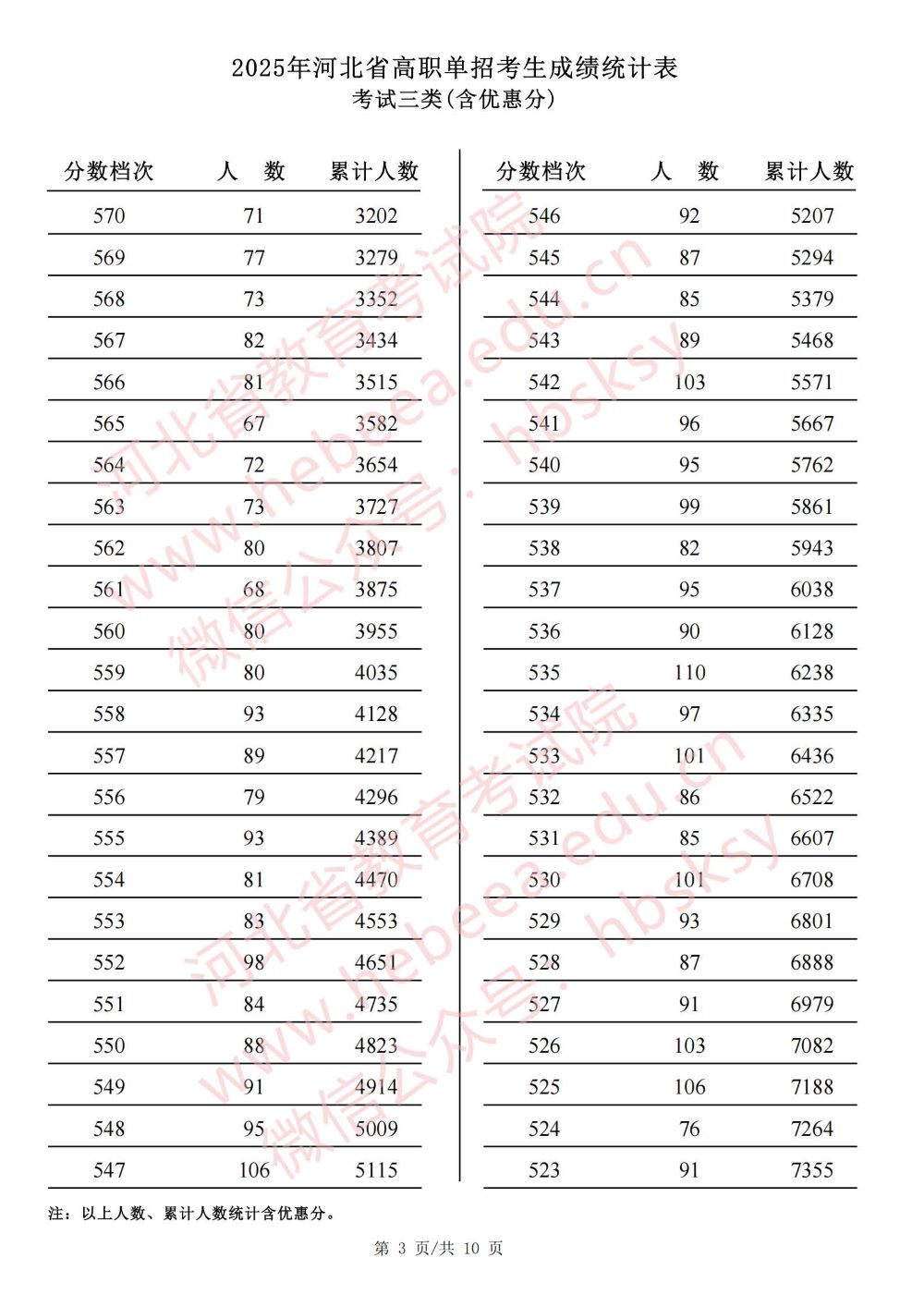 2025年河北省高职单招考试三类成绩统计表