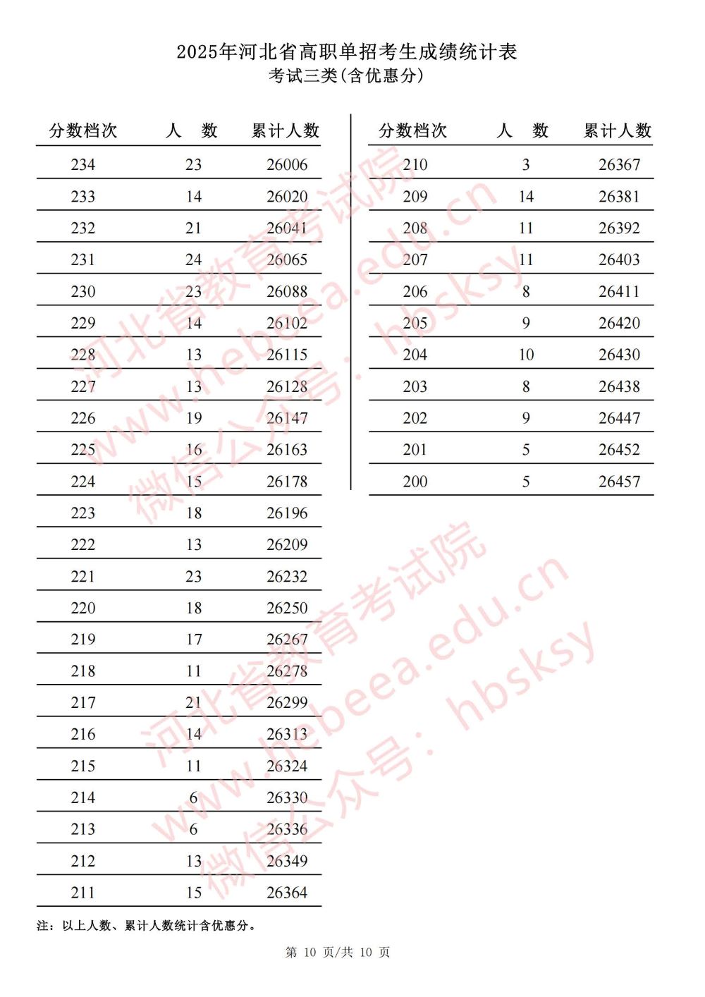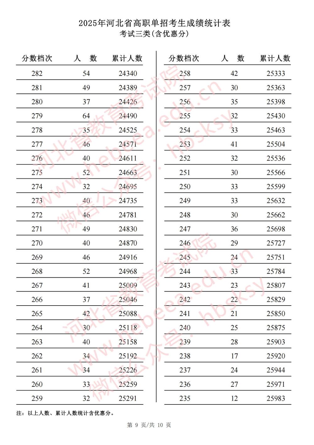 2025年河北省高职单招考试十类成绩统计表