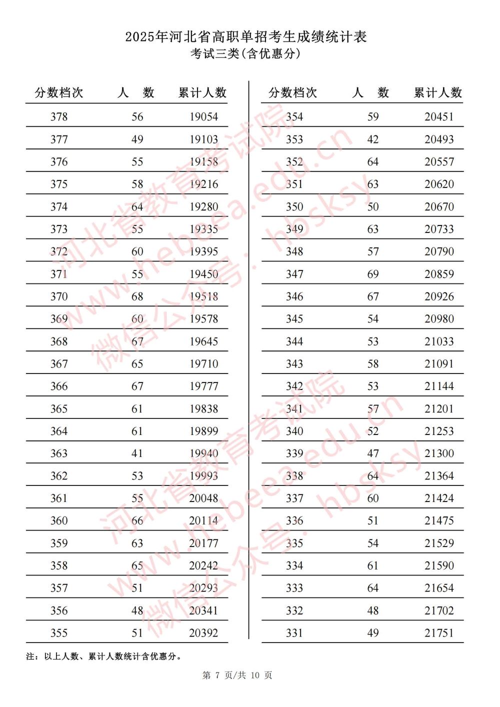 2025年河北省高职单招考试七类成绩统计表
