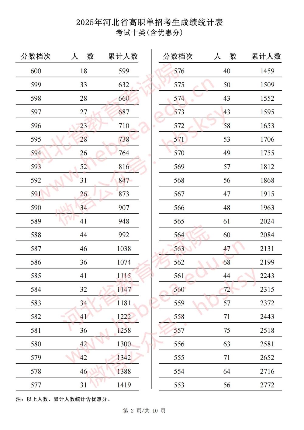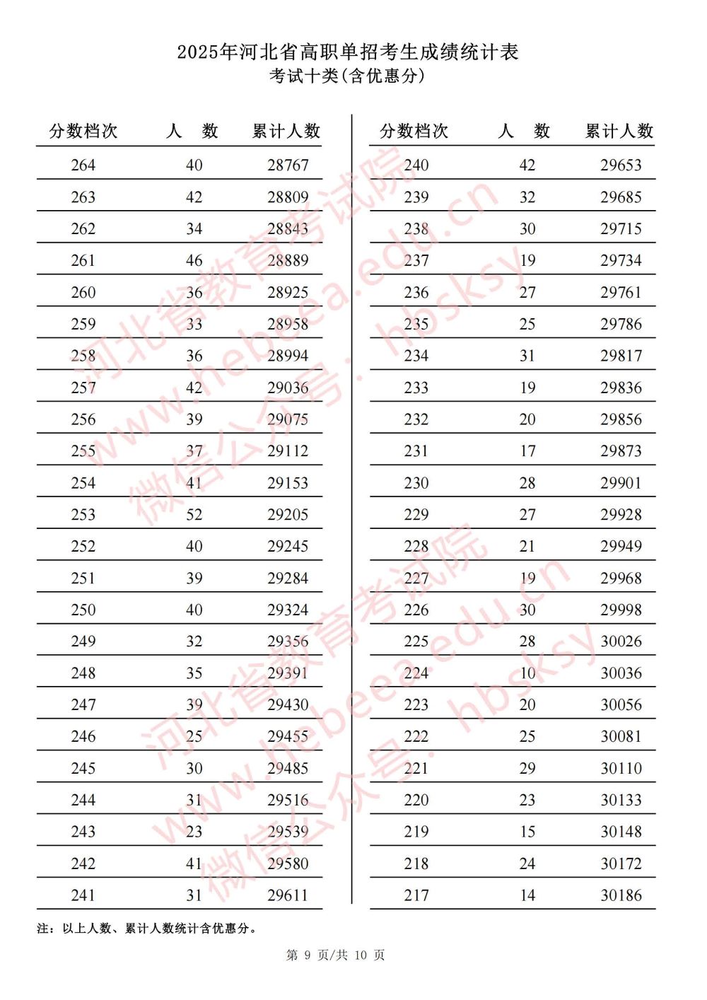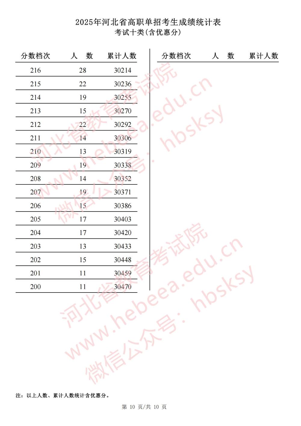 2025年河北省高职单招考试十类成绩统计表