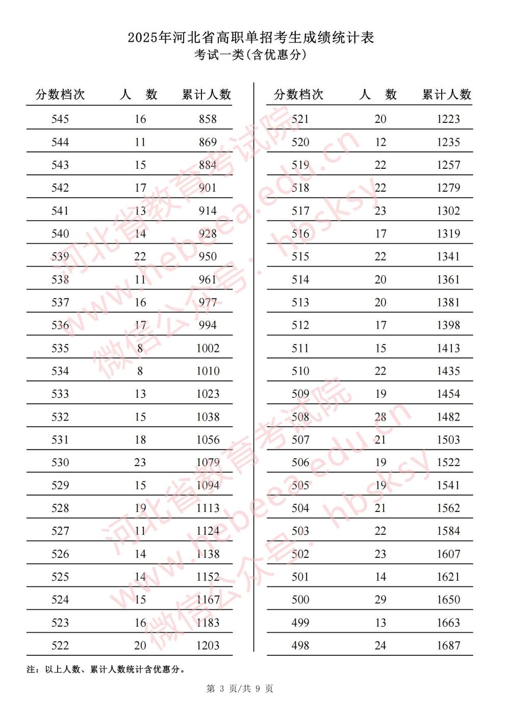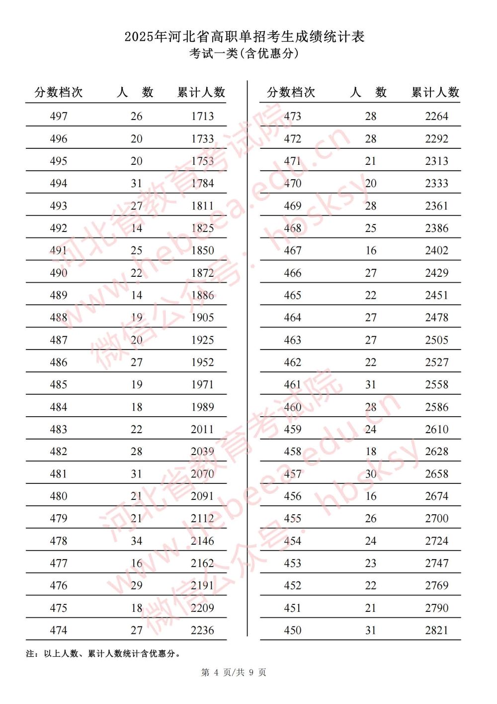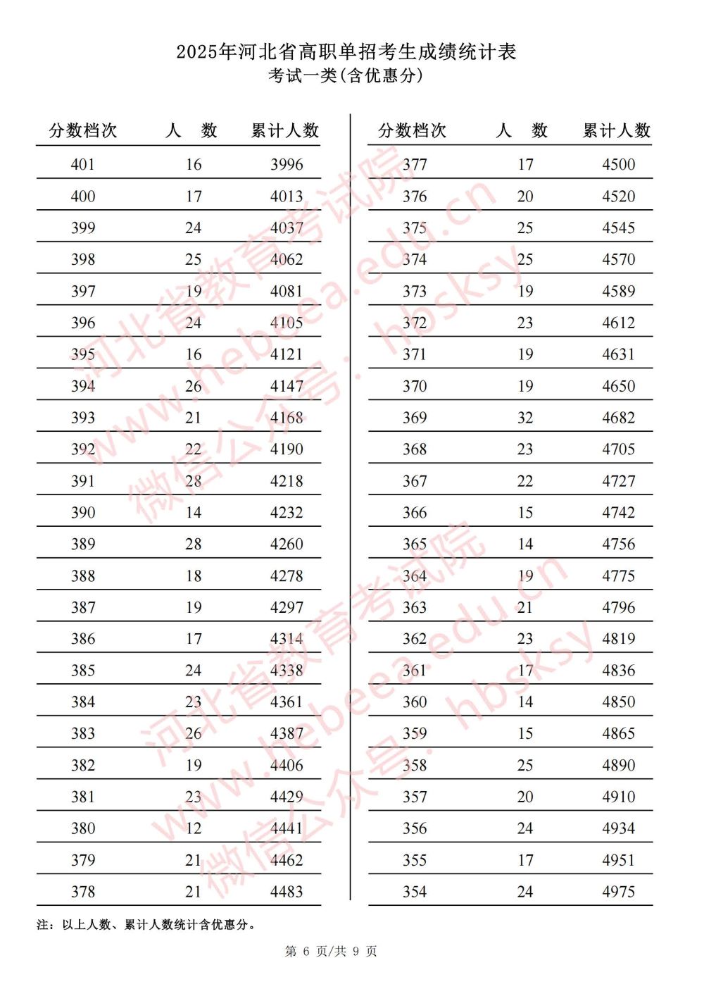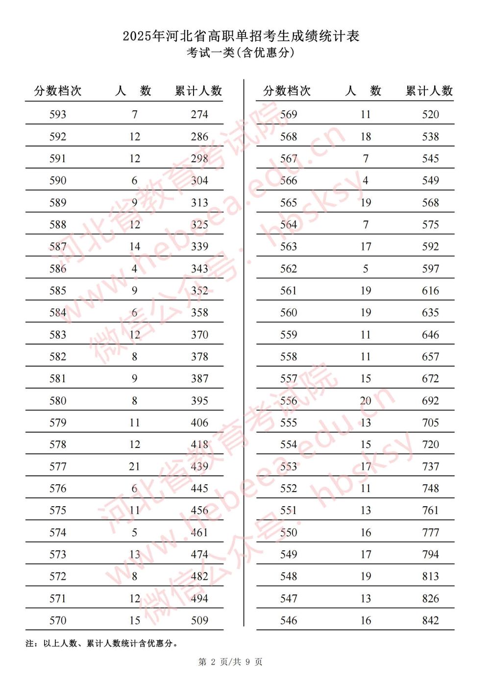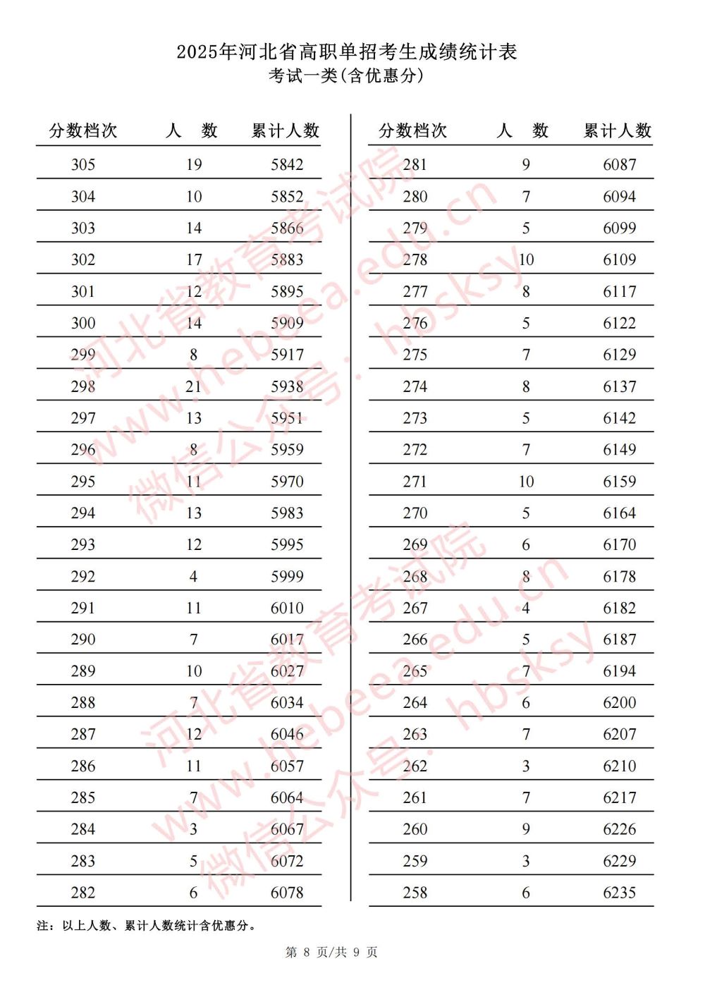 2025年河北省高职单招考试一类成绩统计表